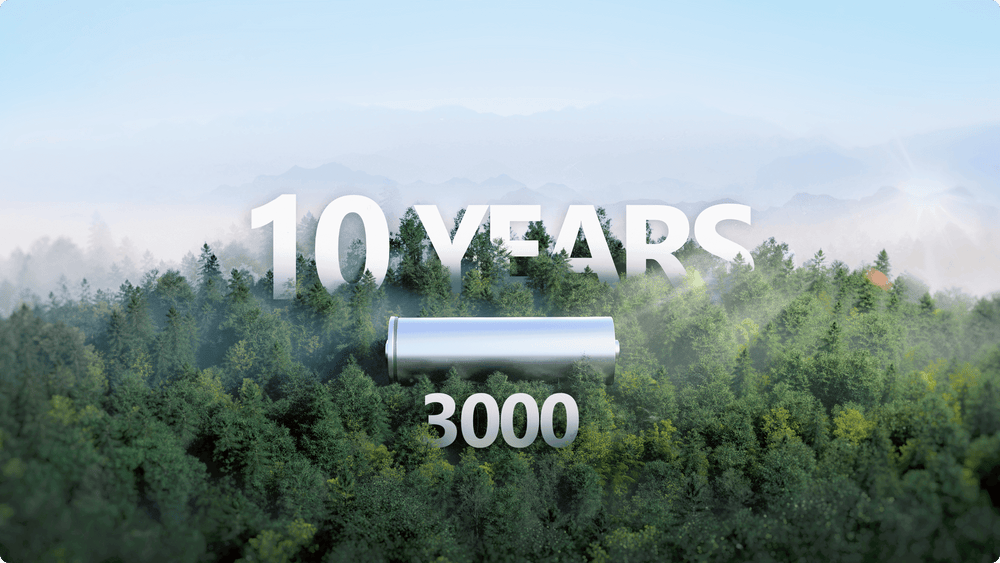 With its upgraded LFP battery chemistry, the DELTA 2 Max Smart Extra Battery has a lifespan of 3000 complete cycles until it reduces to 80% capacity. You'll get pretty much 10 years of power, even if you use it every day. That's 6× longer than other power stations with a similar capacity and output.